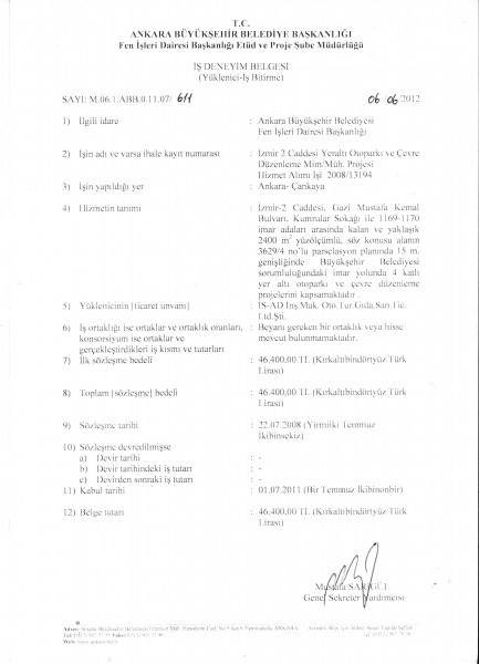 Kırşehir Ahi Evran Üniversitesi Kongre ve Kültür Merkezi İş Bitirme Belgesi
