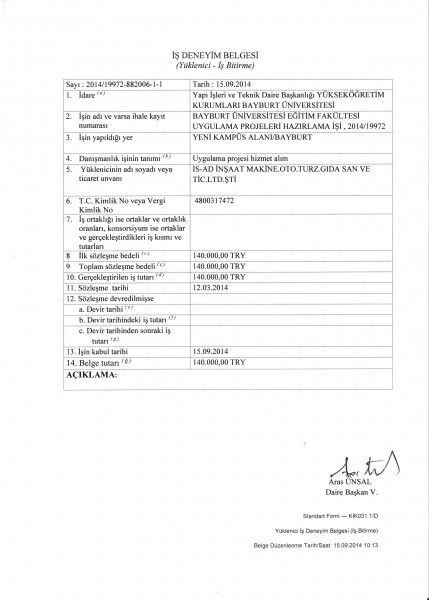 Bayburt Üniversitesi Eğitim Fakültesi iş Bitirme Belgesi